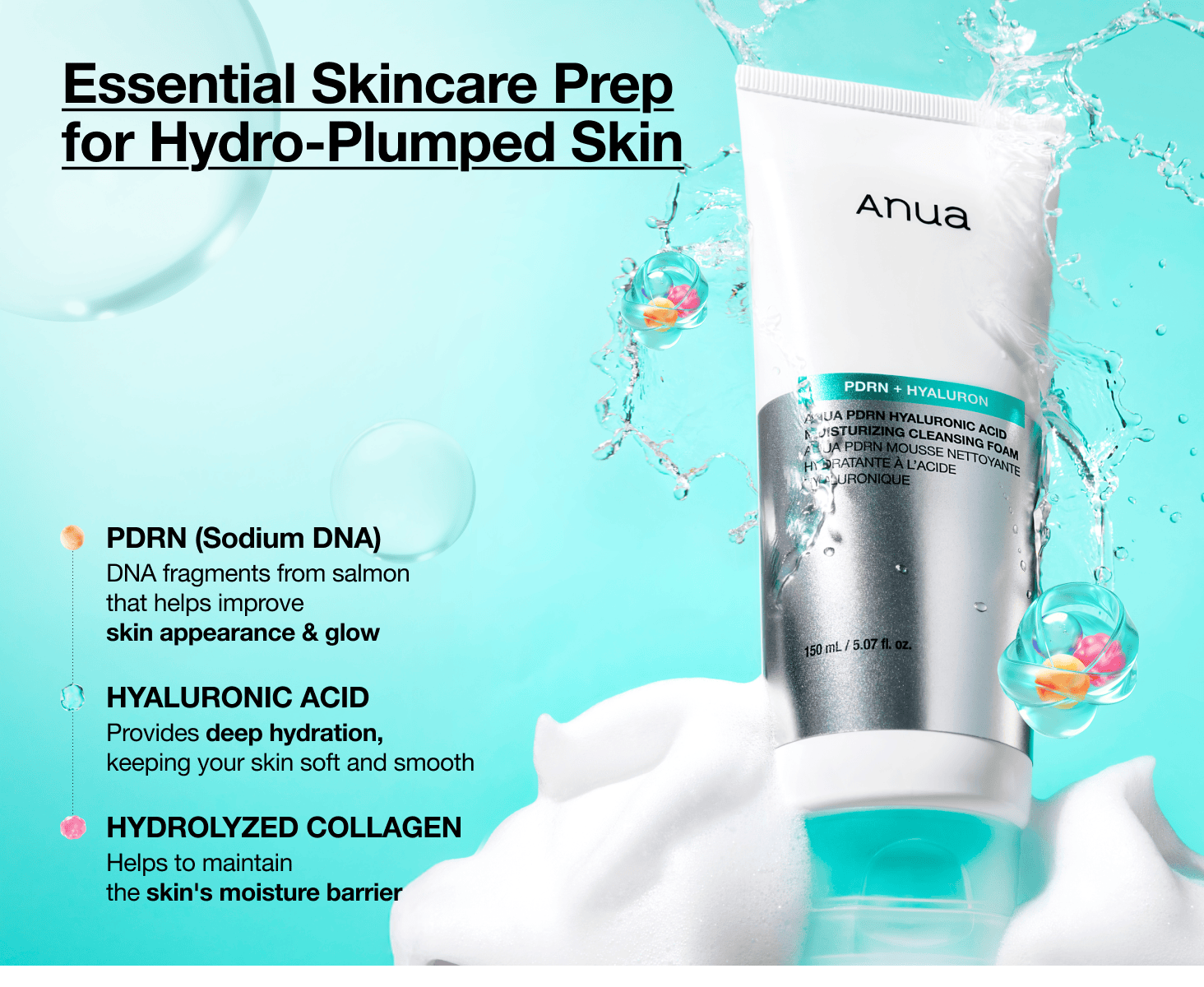 Dispense an appropriate amount and lather with water. Gently massage over the face and rinse thoroughly. Explore other Anua PDRN line products.