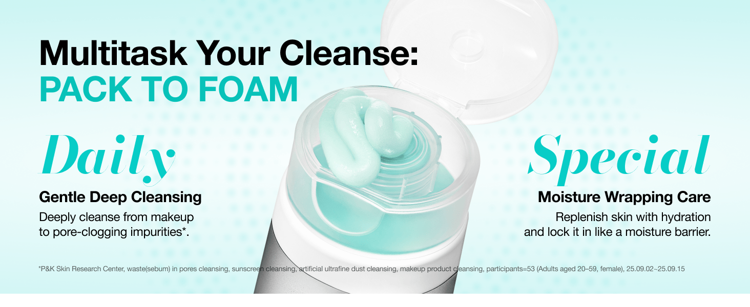 [2-IN-1 PACK-TO-FOAM CARE] Use as a quick mask by applying on dry skin for one minute before washing—the foam transforms into a deep-cleansing pack, helping purify pores and soften skin texture.